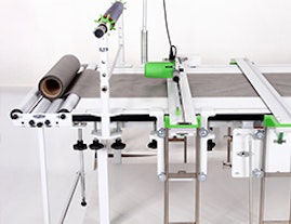 - Individuelt motoriserte bordseksjoner sørger for at materialet ikke forskyver seg over lange lengder, og beholder nøyaktigheten i stofflegget mens materialet mates inn på kutteren