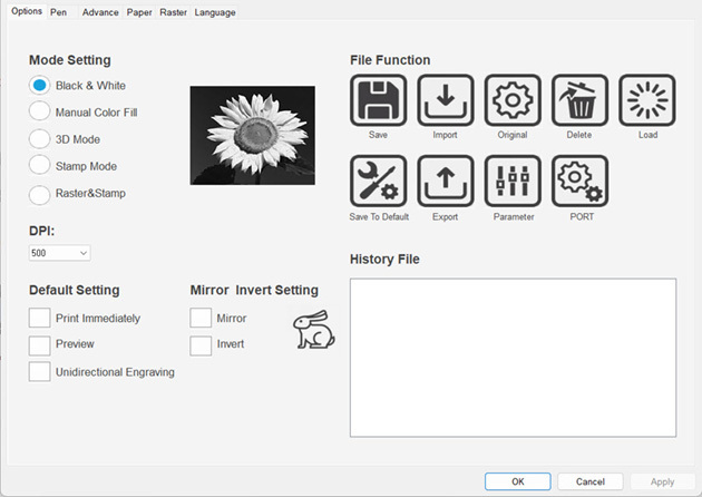 Ved å bruke medfølgende "Smart Act" funksjon, kan man gravere på hele arbeidsflaten 960 x 610 mm.Forsterket belte og kraftige servomotorer