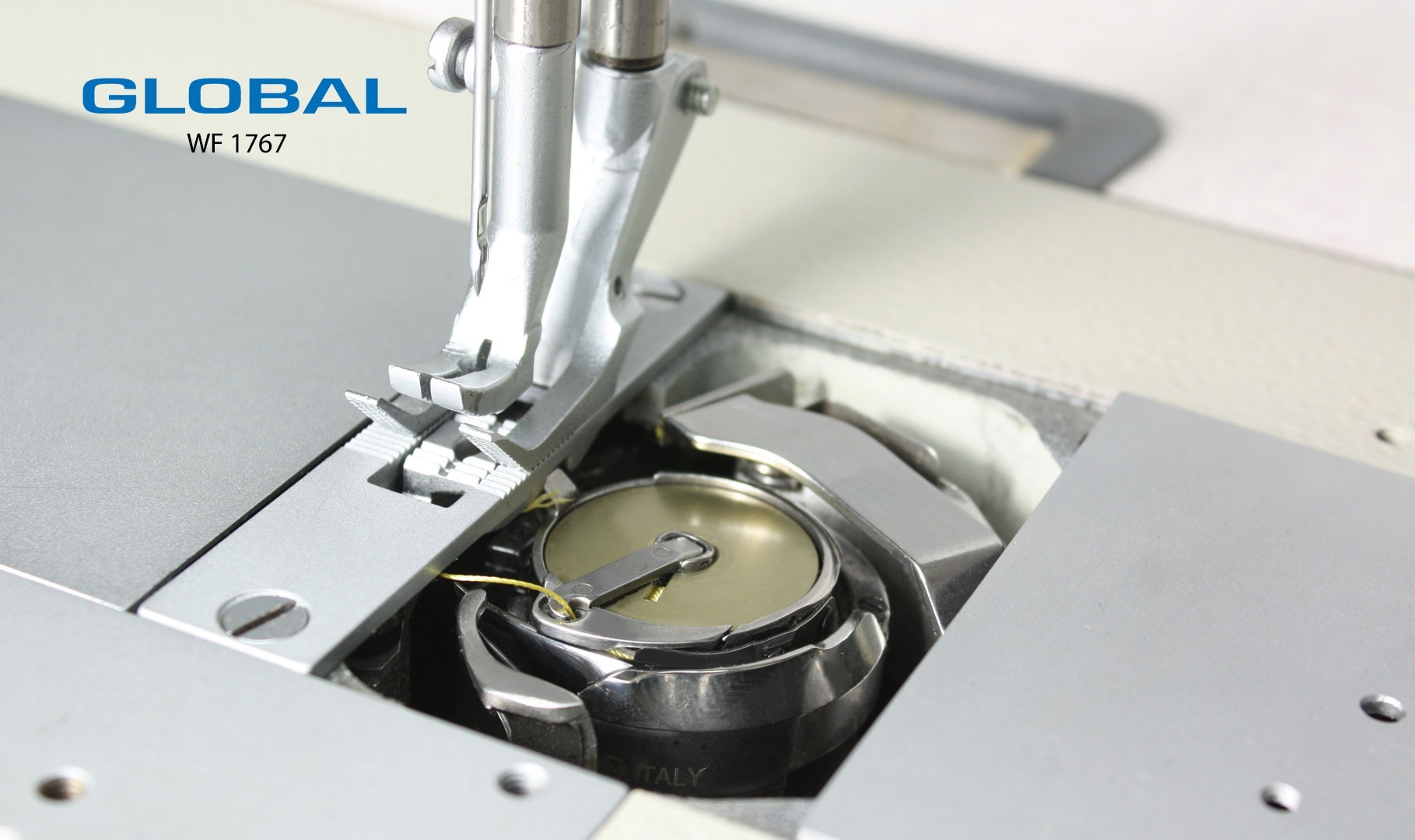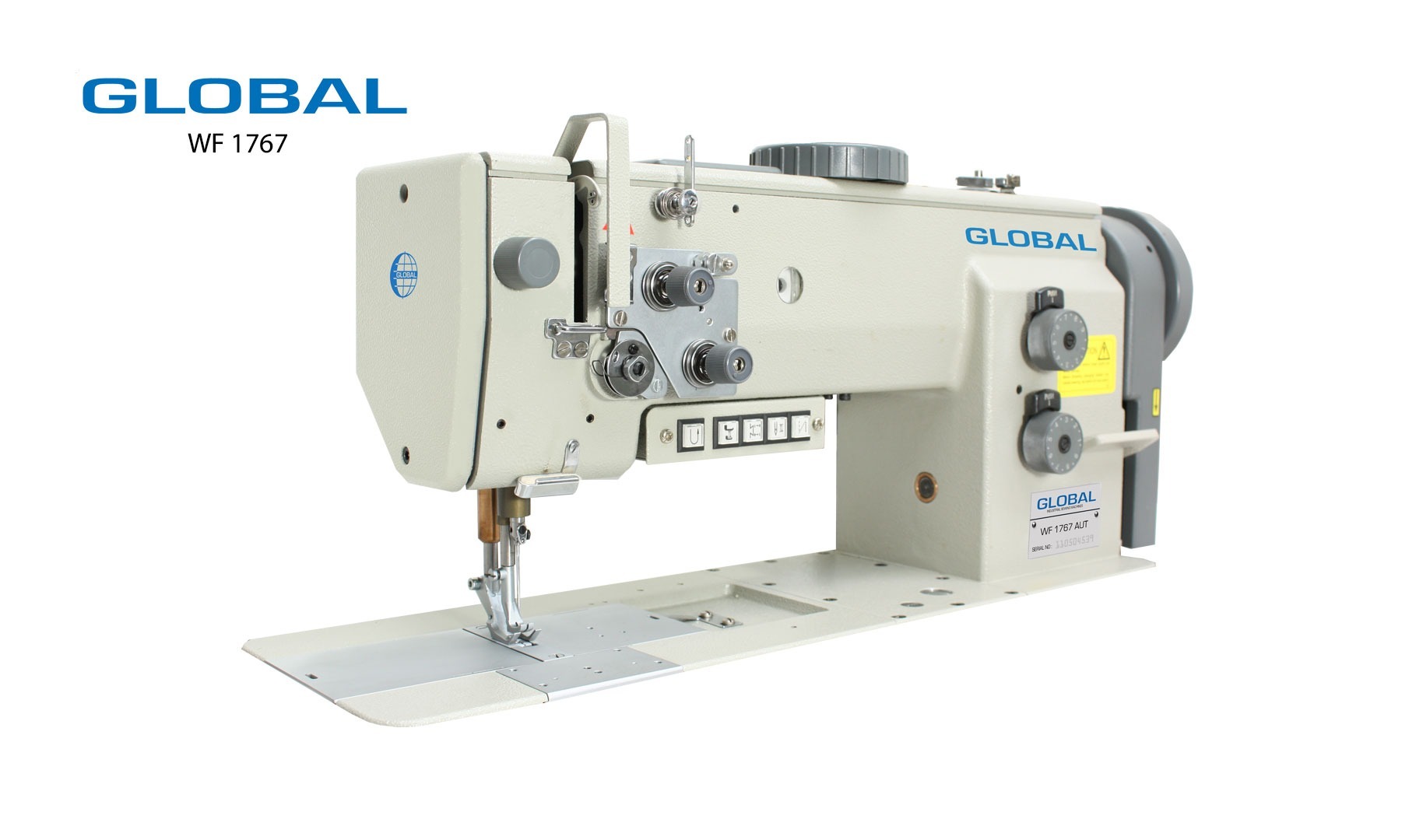 Global WF1767-2-AUT har et brukerpanel der man kan slå av og på funksjoner, samt justere festesting, fart m.m.Maskinen har innebygget servomotor. Motoren går kun når nålen er i bevegelse - ellers er den helt lydløs.