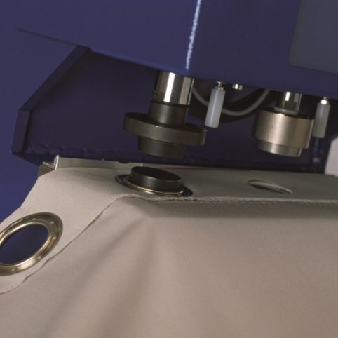 - Doble hydrauliske sylindere for å stanse et hull og presse en gardinmalje i hullet.