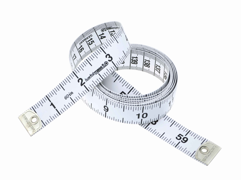 - Hvitt målebånd fra Hoechstmass i høyeste industrikvalitet laget i glassfiber