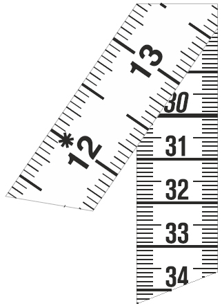 Cm/mm på ene siden og tommer på andre siden i sort skrift.