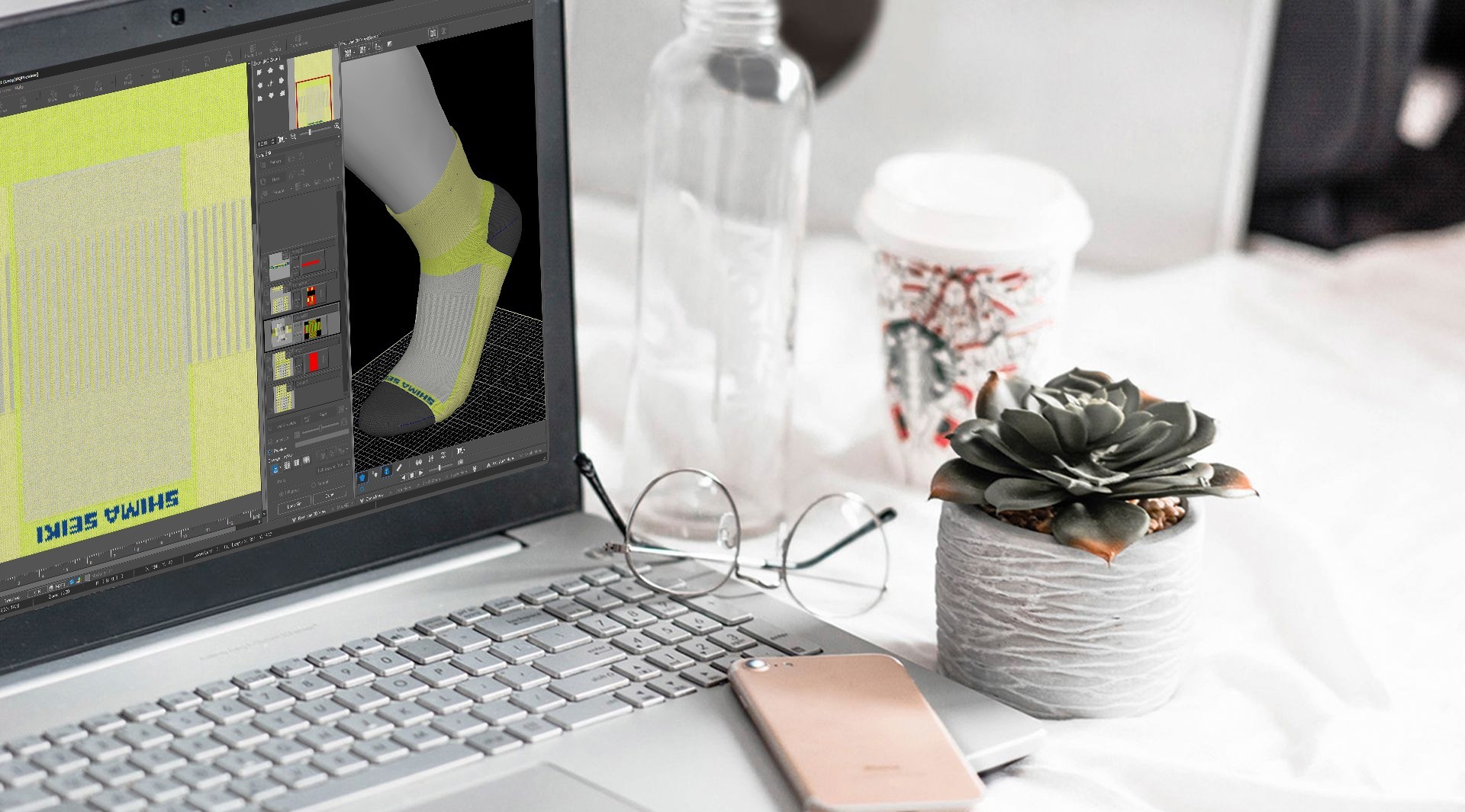 Designprogram for 3D-strikkede sokker med realistisk simulering.
